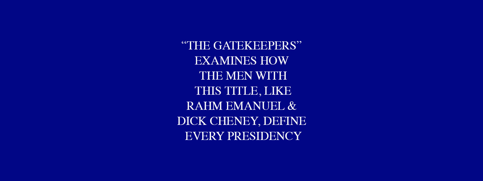 What do Dick Cheney and Rahm Emanuel have in common? Aside from polarizing personalities, both served as chief of staff to the president of the United States—as did Donald Rumsfeld, Leon Panetta, and a relative handful of others. The chiefs of staff, often referred to as “the gatekeepers,” wield tremendous power in Washington and beyond; they decide who is allowed to see the president, negotiate with Congress to push POTUS’s agenda, and—most crucially—enjoy unparalleled access to the leader of the free world. Each chief can make or break an administration, and each president reveals himself by the chief he picks.